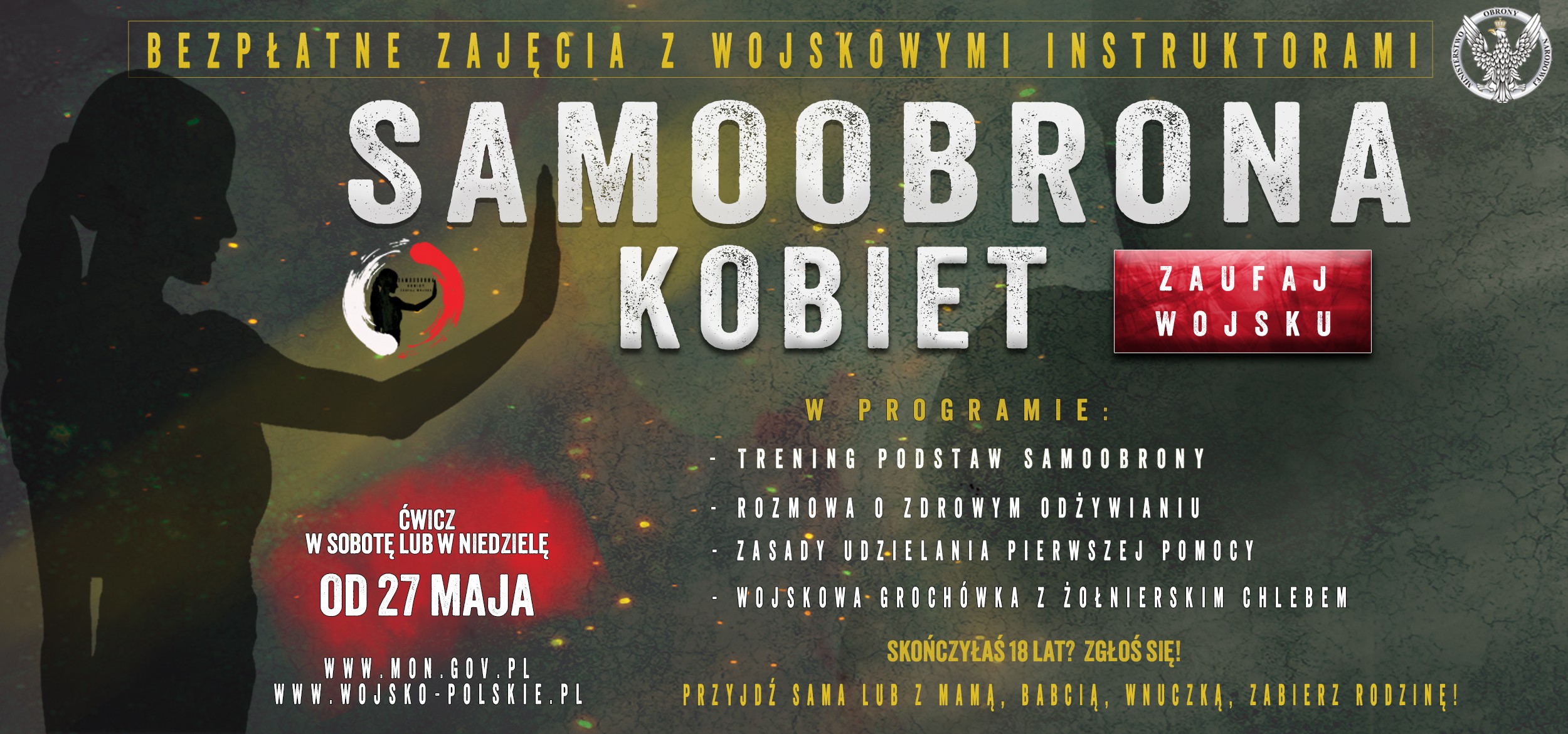 Ministerstwo Obrony Narodowej wraz z Centralnym Wojskowym Centrum Rekrutacji i Dowództwem Generalnym Rodzajów Sił Zbrojnych organizuje bezpłatne szkolenia z samoobrony dla dorosłych Polek. Szkolenia z doświadczonymi żołnierzami – instruktorami odbywać…