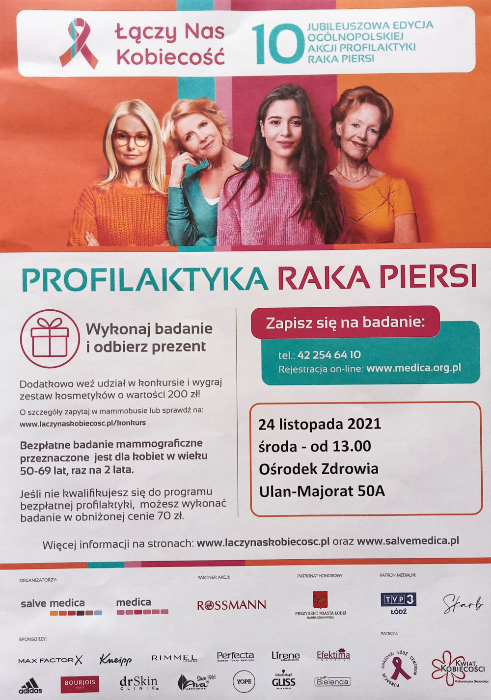Mobilna pracownia mammograficzna będzie do dyspozycji Pań 24 listopada 2021 od godz. 13.00 przy Ośrodku Zdrowia w Ulanie-Majoracie – Ulan-Majorat 50A. W badaniu w ramach Programu mogą wziąć udział Panie w wieku 50-69 lat. Więcej informacji na stronach www.laczynaskobiecosc.pl oraz www.salvemedica.pl