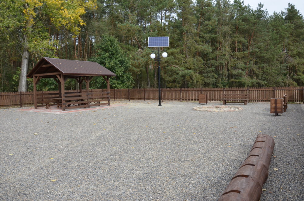 i ogrodzono ogólnodostępny teren wokół altany oraz zamontowano lampę solarną.