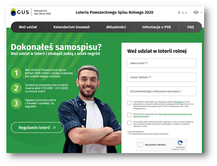 Użytkownicy gospodarstw rolnych, którzy dokonali samospisu w aplikacji spisowej mogą wziąć udział w LOTERII POWSZECHNEGO SPISU ROLNEGO 2020, która trwa od 1 października do 23 listopada 2020 r.