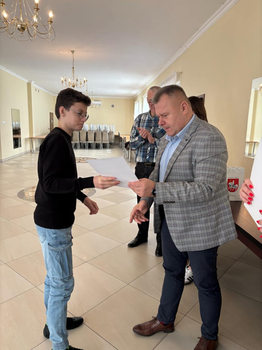 Wójt Gminy Ulan-Majorat – Pan Jarosław Koczkodaj wręczył każdemu z uczestników eliminacji nagrodę rzeczową oraz pamiątkowy dyplom.