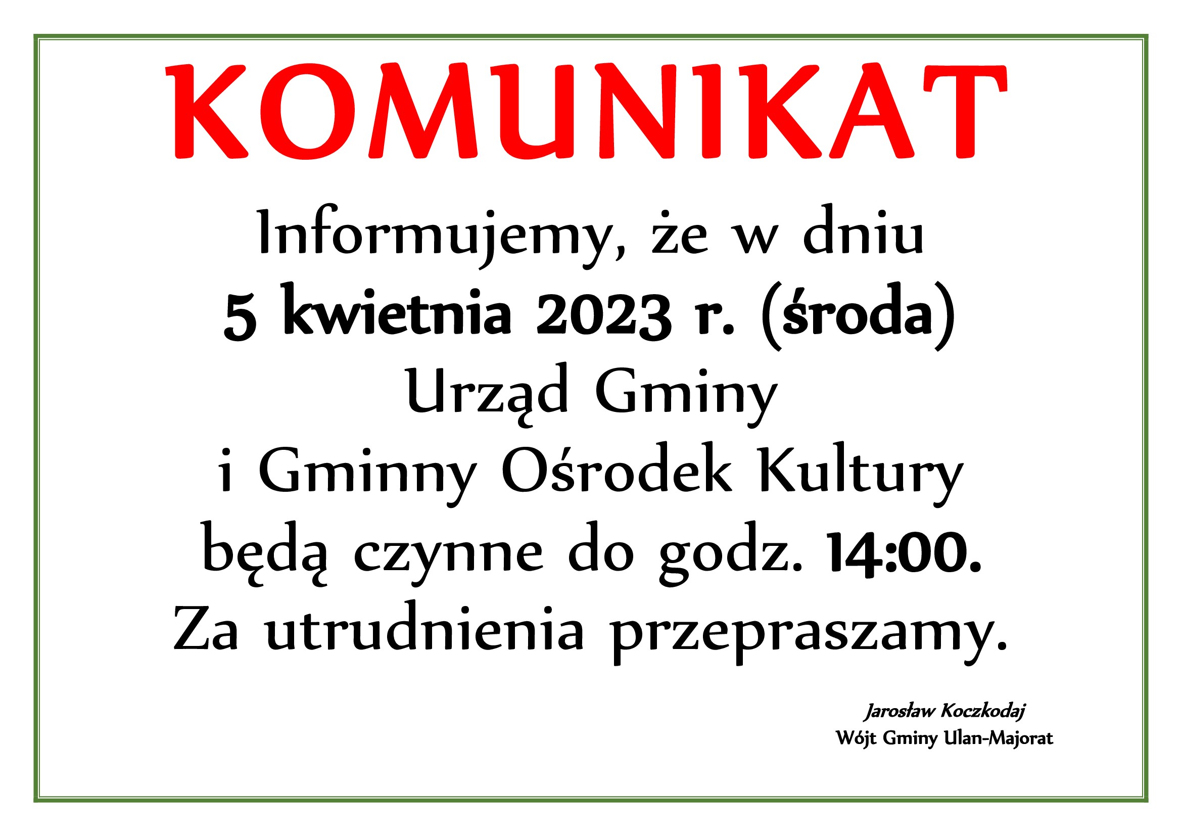 WAŻNY KOMUNIKAT