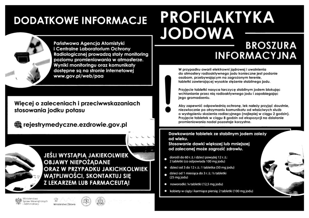 Zachęcamy do zapoznania się z broszurą informacyjną dotyczącą profilaktyki jodku potasu.