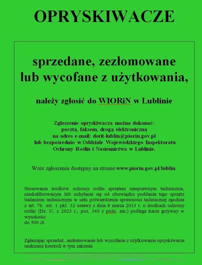 Komunikat Wojewódzkiego Inspektoratu Ochrony Środowiska i Nasiennictwa w Lublinie