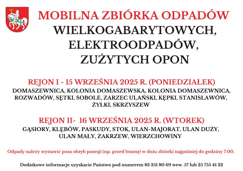 MOBILNA ZBIÓRKA ODPADÓW WIELKOGABARYTOWYCH, ELEKTROODPADÓW, ZUŻYTYCH OPON