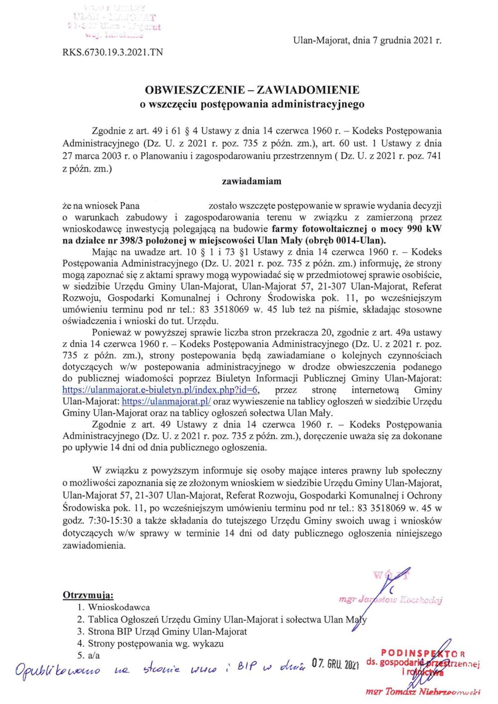 RKS.6730.19.3.2021.TN – OBWIESZCZENIE – ZAWIADOMIENIE