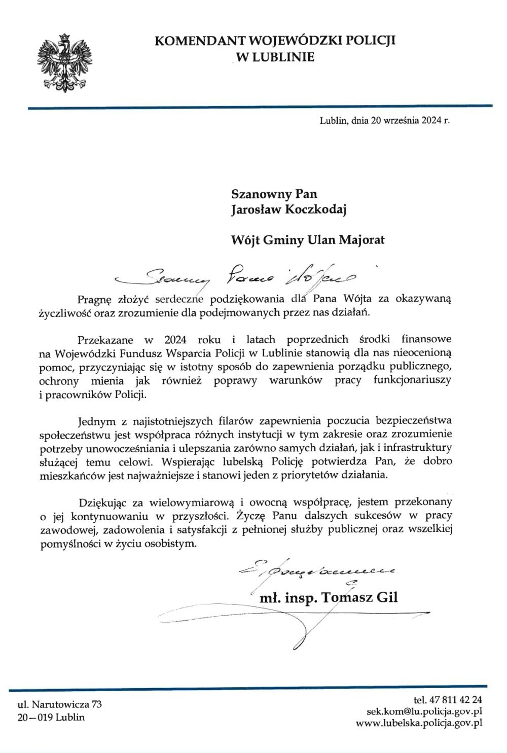 PODZIĘKOWANIE KOMENDANTA WOJEWÓDZKIEGO POLICJI W LUBLINIE