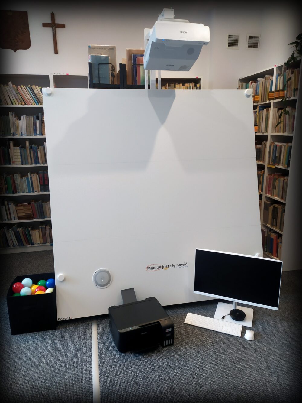 W ramach zadania zakupiono: tablicę interaktywną, projektor multimedialny, zestawy komputerowe, przewodowy głośnik komputerowy ze słuchawką, MS Office, oprogramowanie antywirusowe i drukarkę. Koszt ogółem zadania wynosił 28900 zł, z tego 24500 zł dofinansowania z Instytutu Książki.