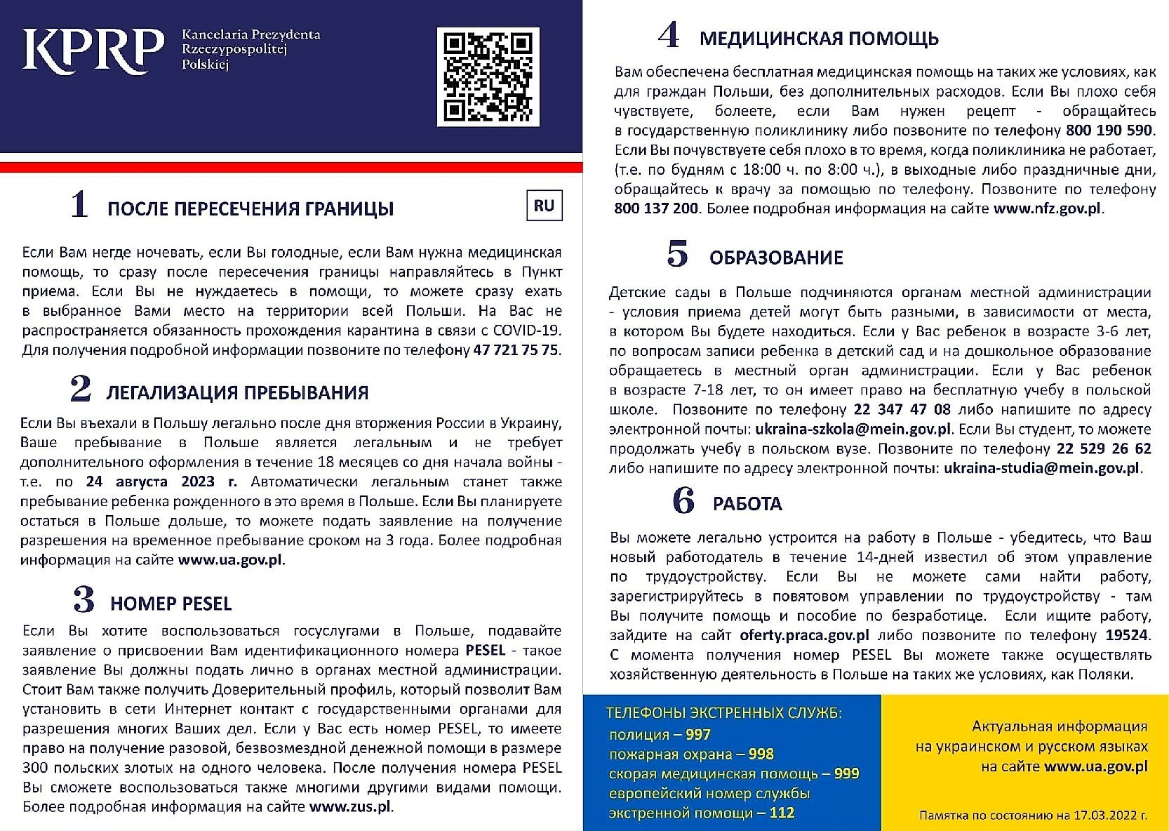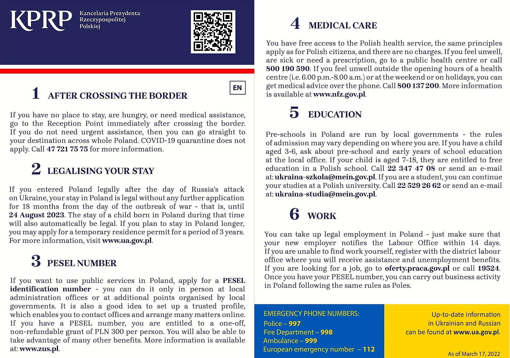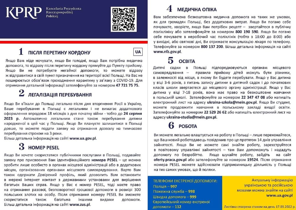 ULOTKA DLA UCHODŹCÓW Z UKRAINY/ЛИСТІВКА ДЛЯ БІЖЕНЦІВ З УКРАЇНИ