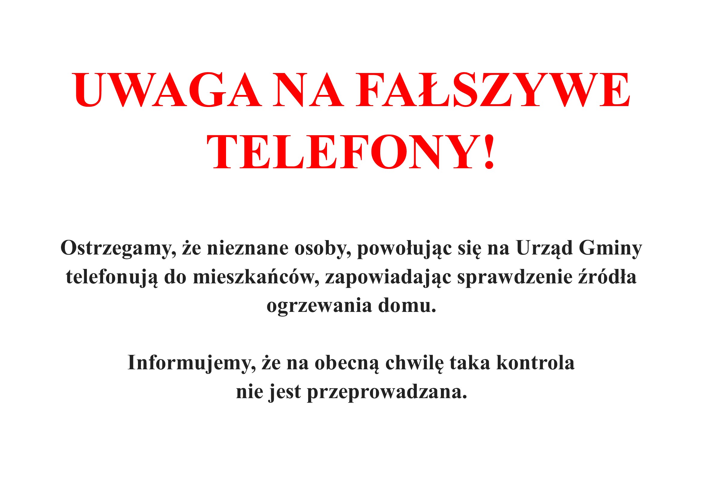 UWAGA NA FAŁSZYWE TELEFONY!