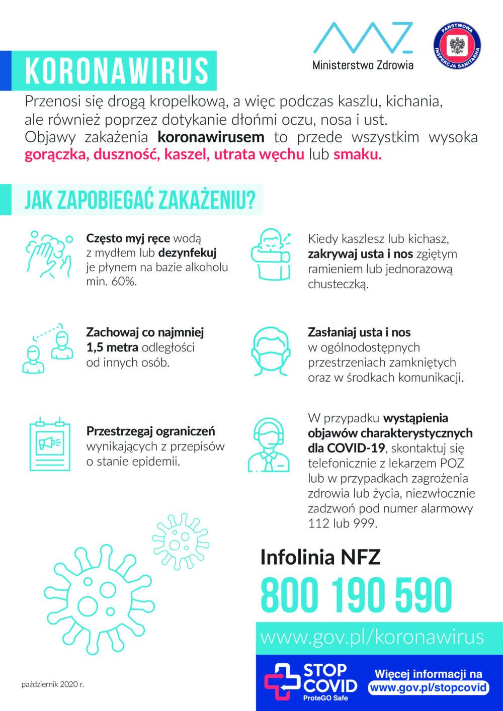 Warunkiem ochrony przed zakażeniem koronawirusem jest przestrzeganie podstawowych zasad bezpieczeństwa – prawidłowe noszenie maseczki, częste mycie i odkażanie rąk oraz zachowanie dystansu społecznego.