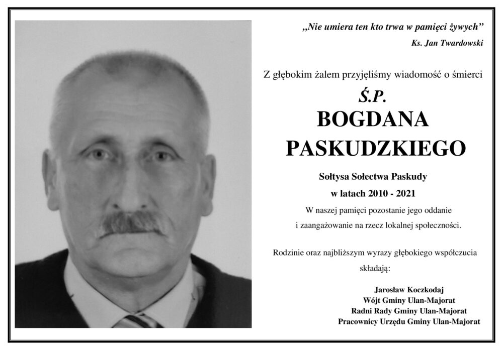 ŻEGNAMY Ś.P. BOGDANA PASKUDZKIEGO – SOŁTYSA SOŁECTWA PASKUDY